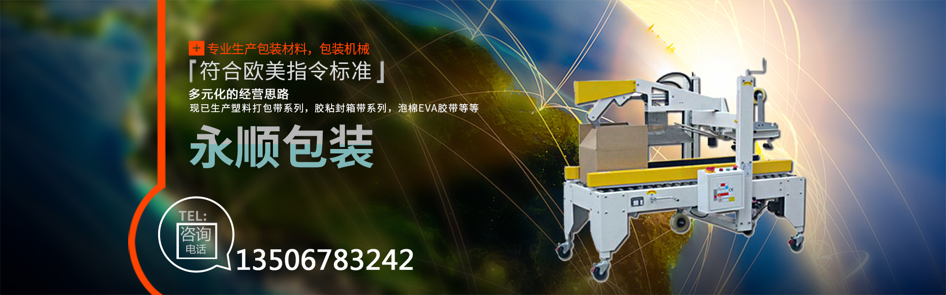 慈溪市永順包裝材料有限公司是一家專業(yè)生產(chǎn)包裝材料,包裝機(jī)械的廠家。公司自創(chuàng)建以來,經(jīng)過不斷的努力,憑借優(yōu)異的產(chǎn)品質(zhì)量,良好的售后服務(wù),在市場(chǎng)上取得了突飛猛進(jìn)的業(yè)績(jī),獲得了客戶的廣泛認(rèn)可與贊譽(yù)。公司本著多元化的經(jīng)營(yíng)思路,現(xiàn)已生產(chǎn)塑料打包帶系列,膠粘封箱帶系列,泡棉EVA膠帶,鋁箔膠帶、美紋膠帶、牛皮膠帶、文具膠帶。全自動(dòng)打包機(jī),收縮包裝機(jī),移印機(jī),真空包裝機(jī),自動(dòng)封口機(jī),纏繞膜裹包機(jī),等各種包裝機(jī)械(無(wú)人化全自動(dòng)包裝機(jī)械)。其中塑料打包帶、粘膠帶已全面通過SGS認(rèn)證,符合歐美指令標(biāo)準(zhǔn)。